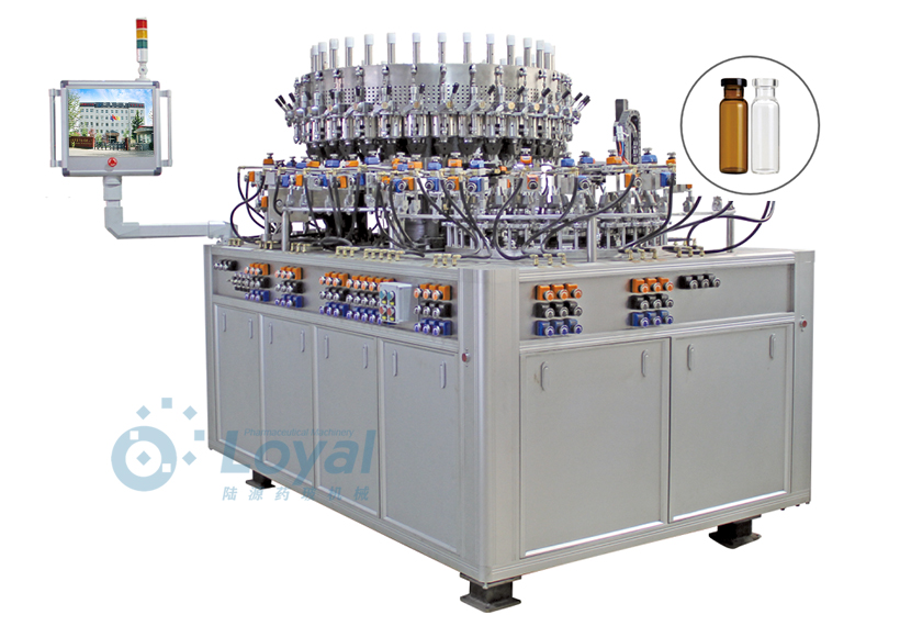 西林瓶生產(chǎn)線包括:自動(dòng)上管、自動(dòng)成型、經(jīng)機(jī)械手轉(zhuǎn)換至前端檢測(cè)線(也叫生產(chǎn)管控)、檢測(cè)線檢測(cè)的項(xiàng)目:1、瓶口內(nèi)外徑 2、瓶身長(zhǎng)短 3、瓶身外徑 4、瓶口邊厚 5、瓶底內(nèi)凹尺寸檢測(cè);經(jīng)檢測(cè)后的合格品再用機(jī)械手夾盤轉(zhuǎn)換至退火爐網(wǎng)帶上,經(jīng)高溫減除應(yīng)力后再降溫,通過(guò)氣動(dòng)吸盤將回火后的小瓶轉(zhuǎn)換至后端檢測(cè)線,后端檢測(cè)(也是重檢也叫終檢),經(jīng)后端拍照檢測(cè)項(xiàng)目